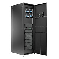 Мощность: 400 кВА/кВт. Модульный. 3-фазный (3:3). Силовые модули на 50/100 кВА/кВт (высотой 3U) с горячей заменой. Высокая масштабируемость и параллельное резервирование N+1 или N+X. Два раздельных ввода: основной ввод и линия байпаса. Наличие готовых батарейных модулей для максимально быстрого внедрения. Технологии трехступенчатого заряда и температурной компенсации для продления срока службы батарей. Режим Power Walk-In для плавного перехода на работу от генератора. |