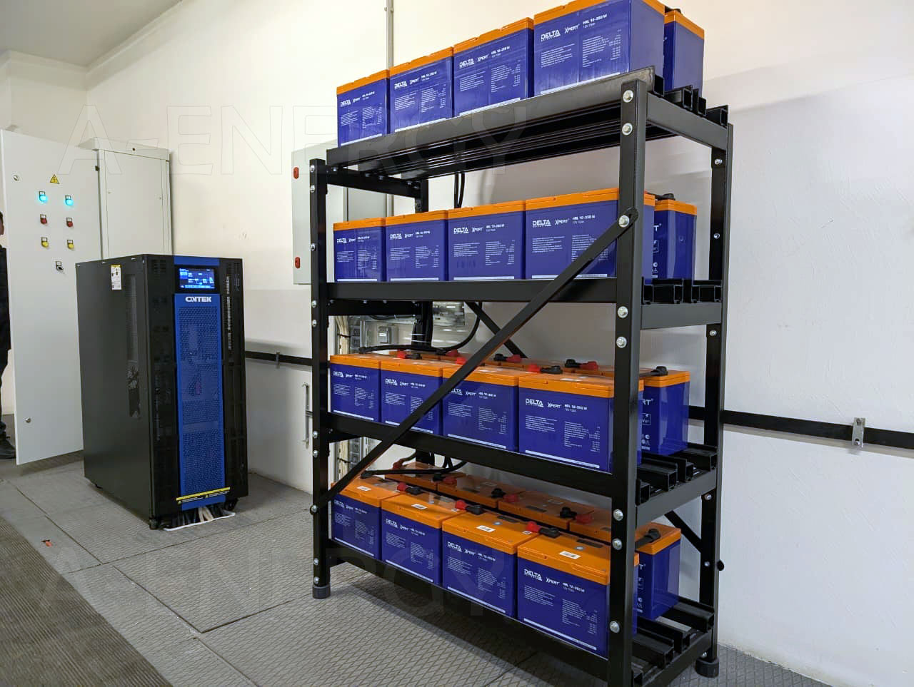 - Поставку, монтаж и интеграцию ИБП с аккумуляторным массивом.