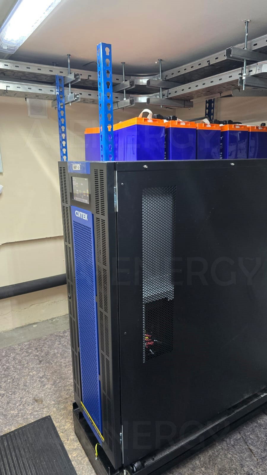 Особенностью проекта стала успешная интеграция нового ИБП с существующей батарейной ёмкостью. Массив, состоящий из 40 аккумуляторов Delta HRL 12-480W, был не так давно обновлён Заказчиком. Наши инженеры провели диагностику каждой батареи и подтвердили их исправное состояние. Это позволило подключить существующий батарейный массив к новому ИБП ONTEK без потери надёжности всей системы. Данное решение позволило Заказчику сэкономить значительные средства, избежав затрат на приобретение новых аккумуляторов.