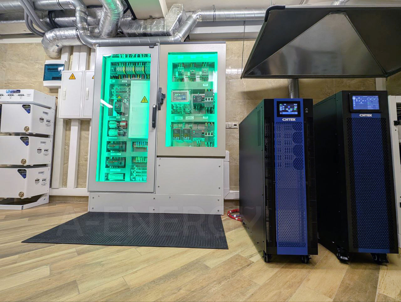 Данный проект выполнен с целью обеспечить чистым и бесперебойным питанием высокотехнологичное и энергоёмкое оборудование в одном из крупных частных коттеджей в Подмосковье. Согласно техническому заданию, наша компания подобрала для Заказчика два ИБП от российского производителя ONTEK: